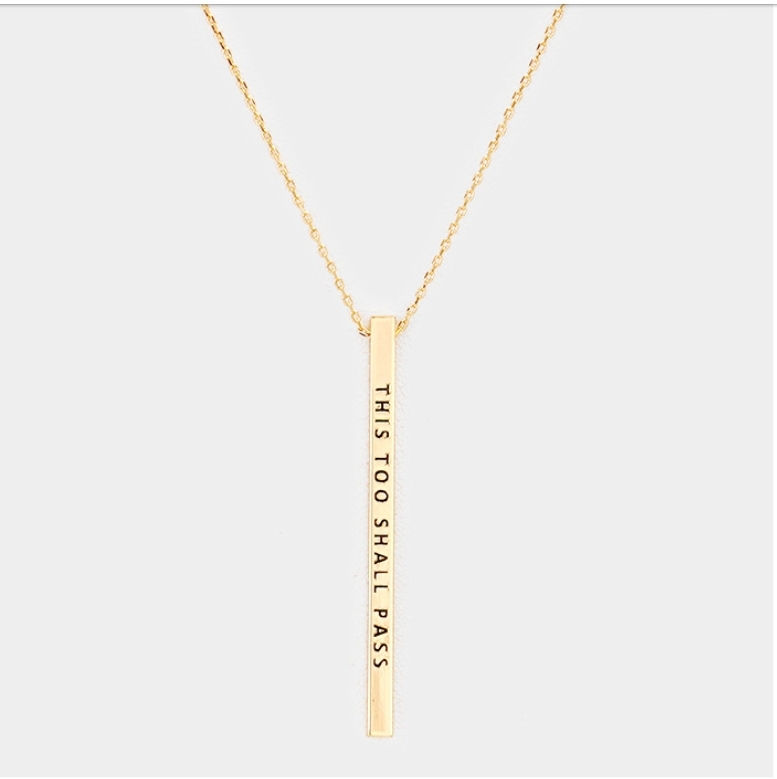 This Too Shall Pass Bar Necklace- Gold